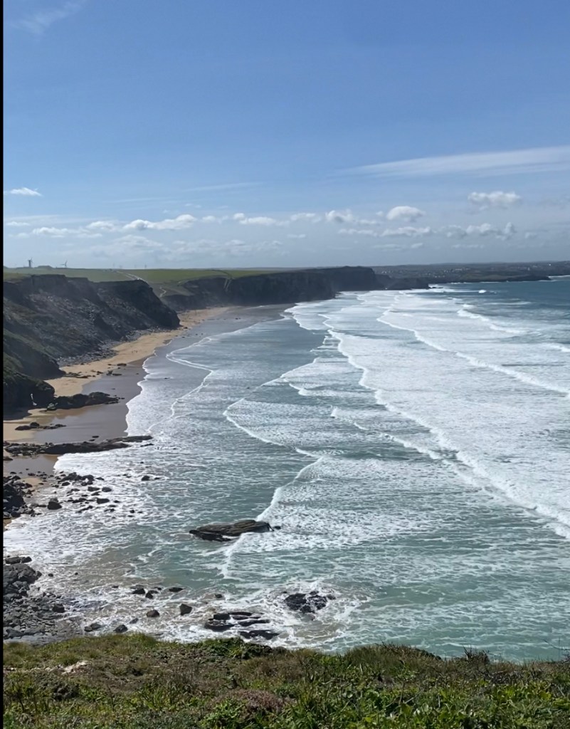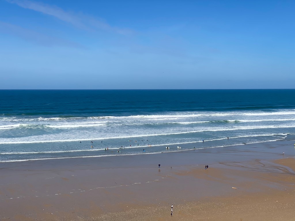 The weather took a turn for the better, sun and a slight breeze. We walked along coastal parks, lots of beaches, and of course the inevitable up and down along the coast. I’m really surprised at the number of surfing beaches there are as well as the number of people in the water. It’s not warm, just sunny! Mums and dads are sitting bundled up on the beach while the kids learn to surf or build sandcastles. Plenty of waves left over from the storm.