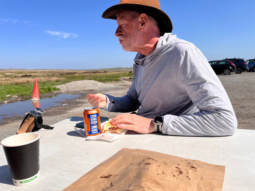 We finally found a tea truck and stopped for a drink and bacon rolls. The owner had a dog named Texas but none of us had the energy to really find out why. Out next planned stop was a pub in the middle of nowhere called the White House and we thought we would never get there. But after one (or more) fn boulder fields, we saw it in the distance. It was enough to make us all perk up and get some speed on (especially Eric). We ran into John at the White House and the guys had a wee chat.