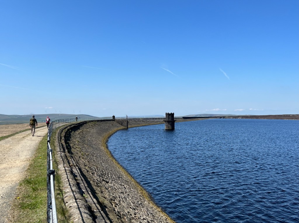 The rest of the day was hiking a flat trail along and around a reservoir that helped knock out some miles. Across another boulder field with a climb up to a monument, where we had a second lunch.